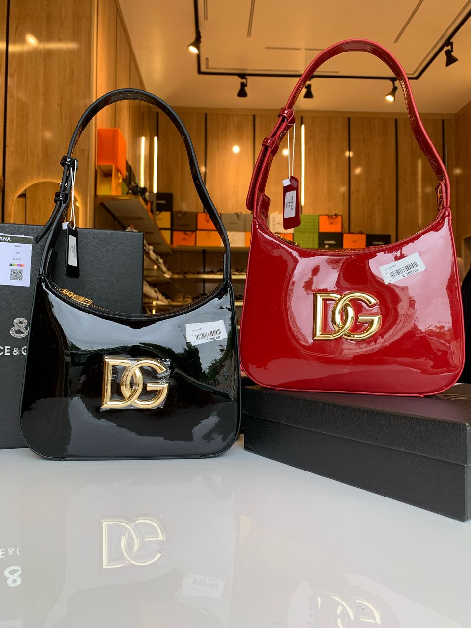 Réf. : SAC-998 Ce sac baguette moyen signé Dolce & Gabbana séduit par son cuir verni brillant, au fini glossy ultra élégant, dans un duo raffiné de rouge et noir. Idéal pour les soirées, sorties ou un look de ville sophistiqué, il est doté d’une fermeture aimantée discrète, de finitions haut de gamme, d’une doublure en tissu satiné, et d’éléments métalliques raffinés. Un accessoire de luxe qui sublime chaque tenue avec caractère et distinction.